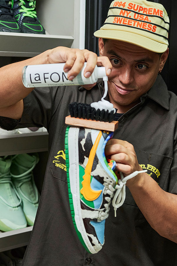 En promedio, lavar un par de zapatos de la forma tradicional consume hasta un 90% más de agua. Con La Fom, solo necesitas un "puff" de nuestra espuma limpiadora para obtener resultados superiores, reduciendo el consumo de agua significativamente. Este enfoque no solo cuida tus sneakers, sino también nuestro recurso más vital, el agua.